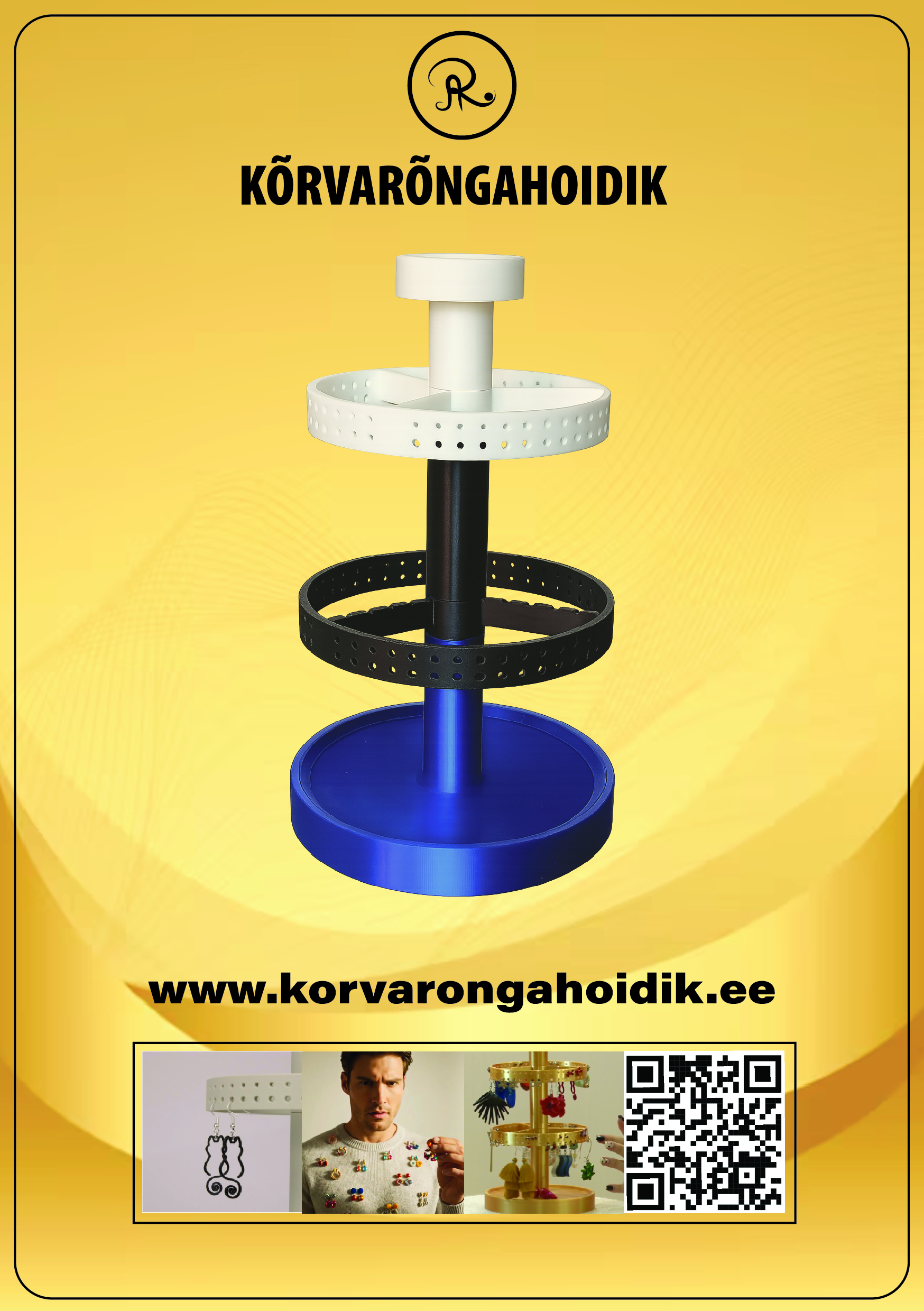 Kui sul on kümnete kaupa kõrvarõngaid, osad neist vannitoas, osad, esikus, osad magamistoas ja pooled paarist puudu, siis vajad meie kõrvarõngahoidikut! See on 3D-prinditud, eri värvides, korruste arvu ning suurustega. Hoidiku korrused on keerlevad, nii leiad meelepärased rõngad väga kiiresti. Hoidik võtab vähe ruumi, aga samas mahutab palju.